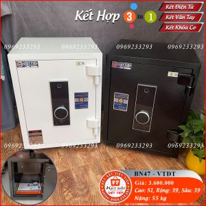 Két Sắt Vân Tay Điện Tử BN47 – VT, Trắng, Bảng Khóa Dọc, Việt Tiệp, Nặng 55kg, Két Sắt Bắc Giang.